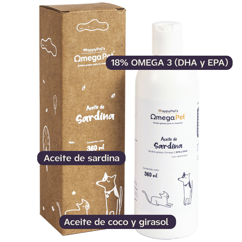 A diferencia del resto, Omegapet contiene aceite de sardina en vez de salmón. Este aceite es preferido, ya que contiene partes iguales de DHA y EPA, lo cuál lo vuelve útil en toas las etapas de la vida.